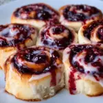Delicious Cherry Cinnamon Rolls filled with sweet cherries and warm cinnamon, topped with creamy frosting.