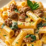 When the cool evening air settles in and the day winds down, nothing sings comfort quite like a steaming bowl of Creamy Sausage Rigatoni. As the rich aroma wafts from the kitchen, inviting everyone to gather around the table, you’re left with a tantalizing anticipation. Picture yourself twirling forkfuls of robust, pasta nestled against the silky backdrop of a creamy tomato sauce, intermingled with savory bits of crumbled Italian sausage. Each bite feels decadent, a warm hug wrapped in velvety goodness. The addition of fresh spinach brings a vibrant pop of color, brightening the dish while also offering a whisper of earthiness.