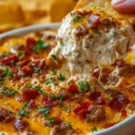 A rich and creamy cheesy dip featuring savory sausage, perfect for any gathering.