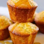 Freshly baked honey cornbread muffins topped with honey glaze.