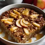 A heartwarming breakfast bake combining rolled oats, baked apples, and warm spices for a comforting morning dish.