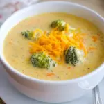 Think of the vibrant green of tender broccoli florets amidst a creamy, luscious soup that coats your palate with every spoonful. You taste the sharpness of cheddar, yet it merges seamlessly with creaminess, creating a dreamy concoction that dances on your taste buds. The delightful crunch of occasional carrot peeks through the luscious texture, teasing your senses with every bite. You can hear the gentle sizzling of butter and the fragrant cooking of onions in the background, pulling you closer to the pot, as if it’s calling your name. Dive into this recipe, and let it unfold like a heartfelt story with every delicious detail.