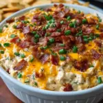 - Transfer the creamy mixture to a beautiful serving dish. For an extra touch, garnish with additional bacon bits and a sprinkle of green onions.