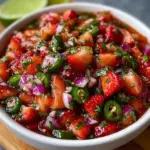 This Spicy Sweet Strawberry Jalapeño Salsa stands out for several reasons. First, it offers a delightful rush of flavors that marries sweet with spicy in a way that’s hard to resist. It’s the perfect companion to brighten up your summer BBQs, cozy family dinners, or intimate gatherings with friends. Every bite brings about a pleasant surprise — the luscious sweetness of the strawberries balances beautifully with the vibrant heat of jalapeños, and as a bonus, the freshness of cilantro ties it all together.